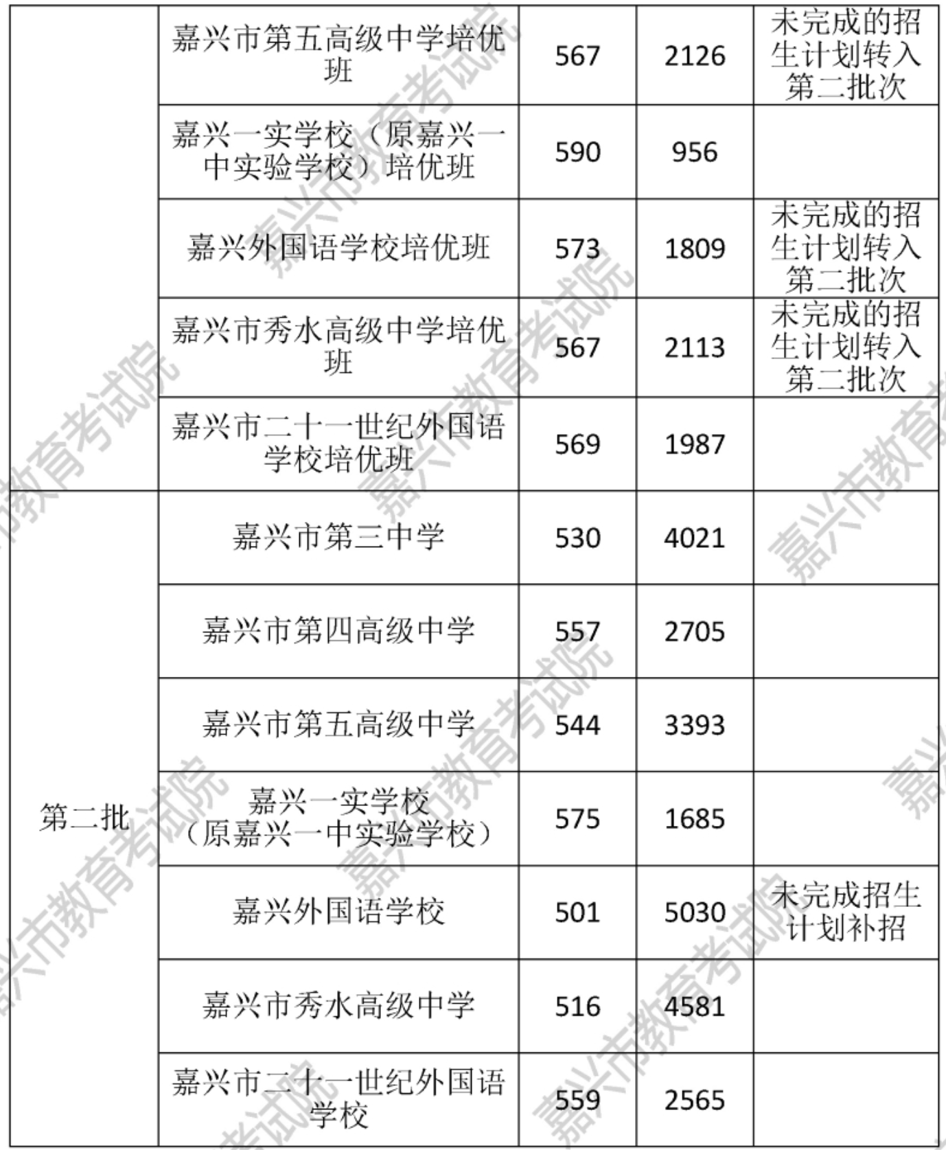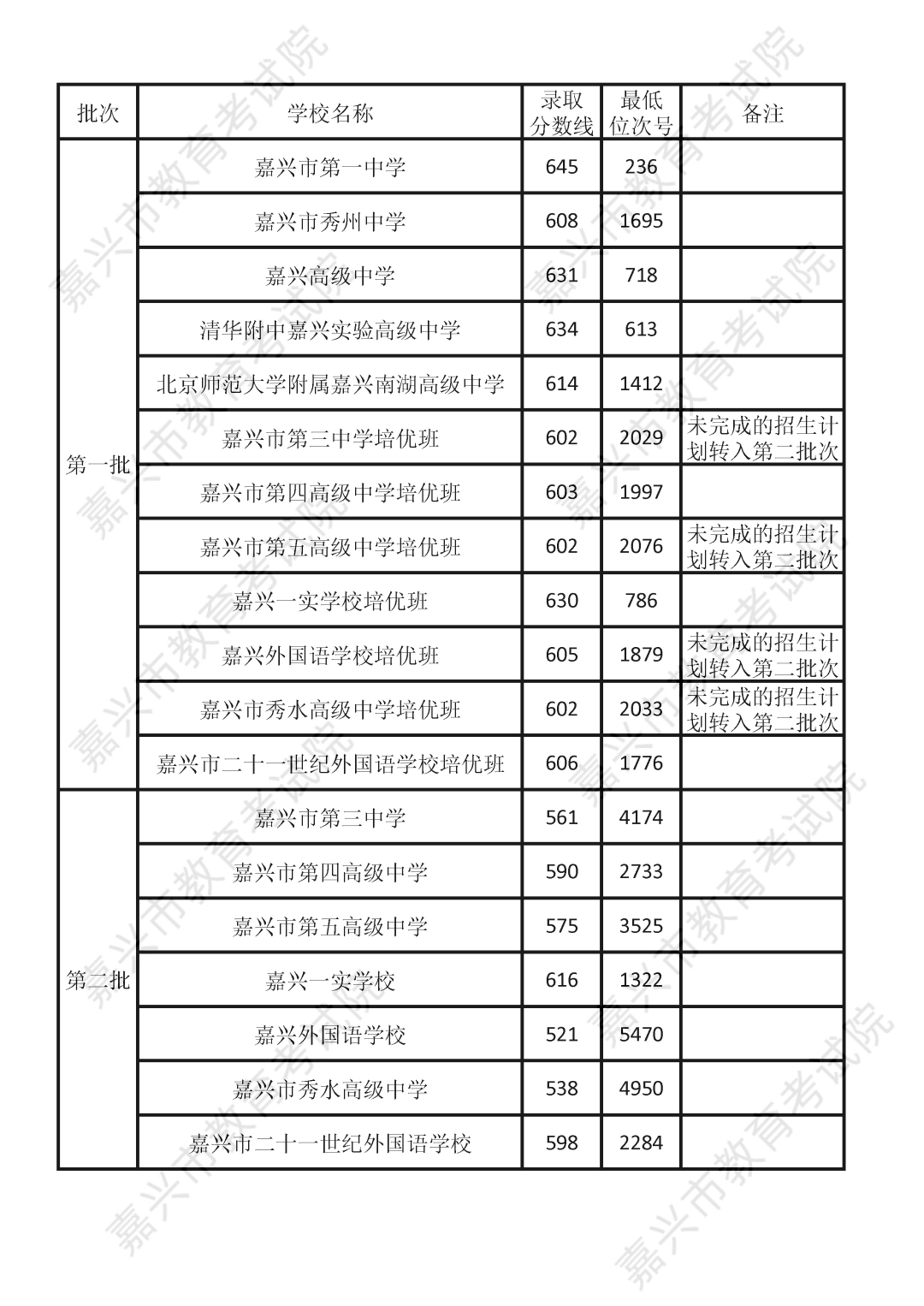 2023年嘉兴市本级普通高中招生各学校录取分数线
