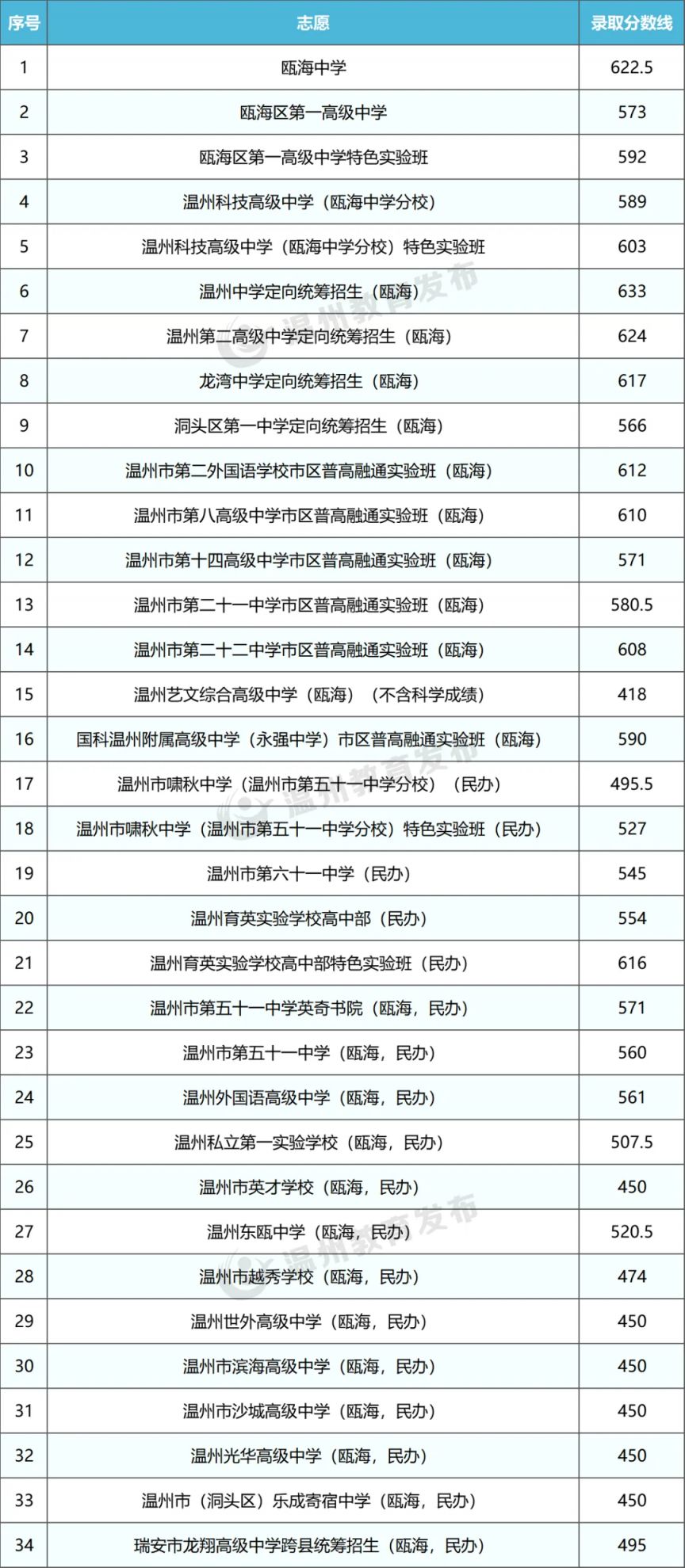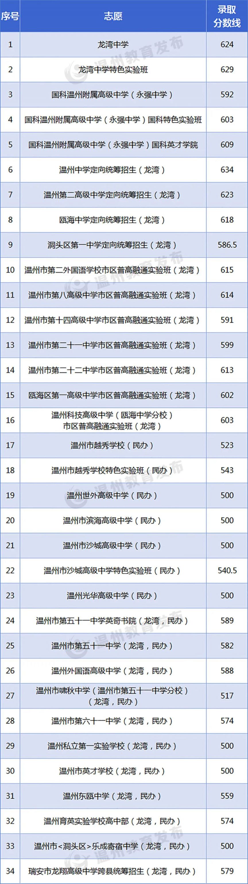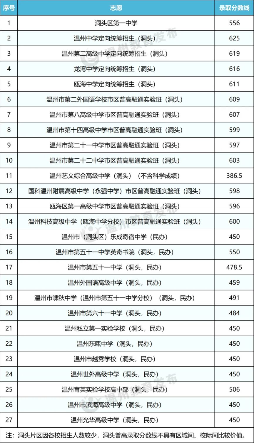 2023年温州市教育局直属普通高中志愿录取分数线划定。